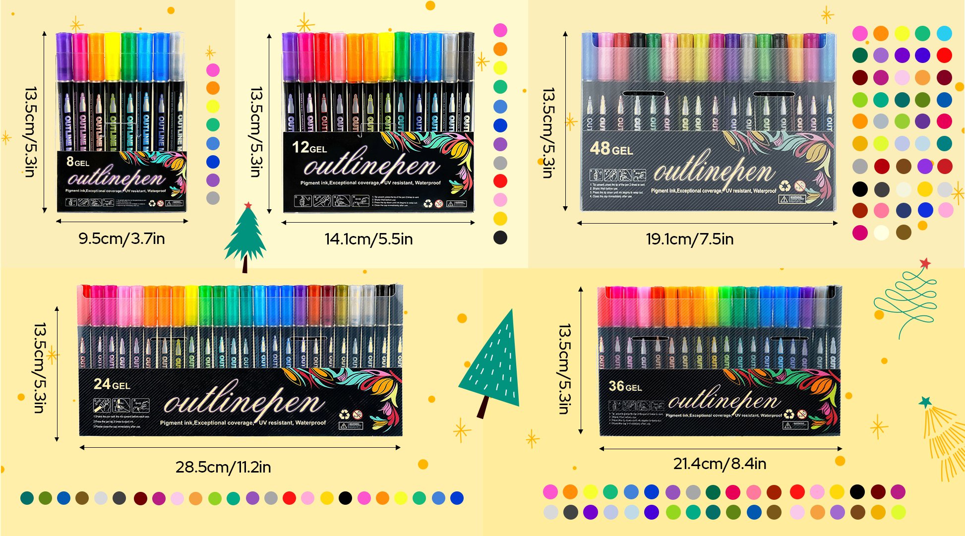 "I purchased the 24-color set for some DIY projects, and they did not disappoint! These pens make it so easy to create beautiful outlines and details, and the glittery effect adds just the right amount of sparkle. Highly recommend for any craft lover!"