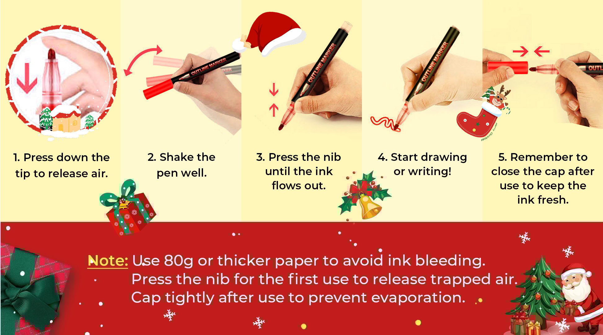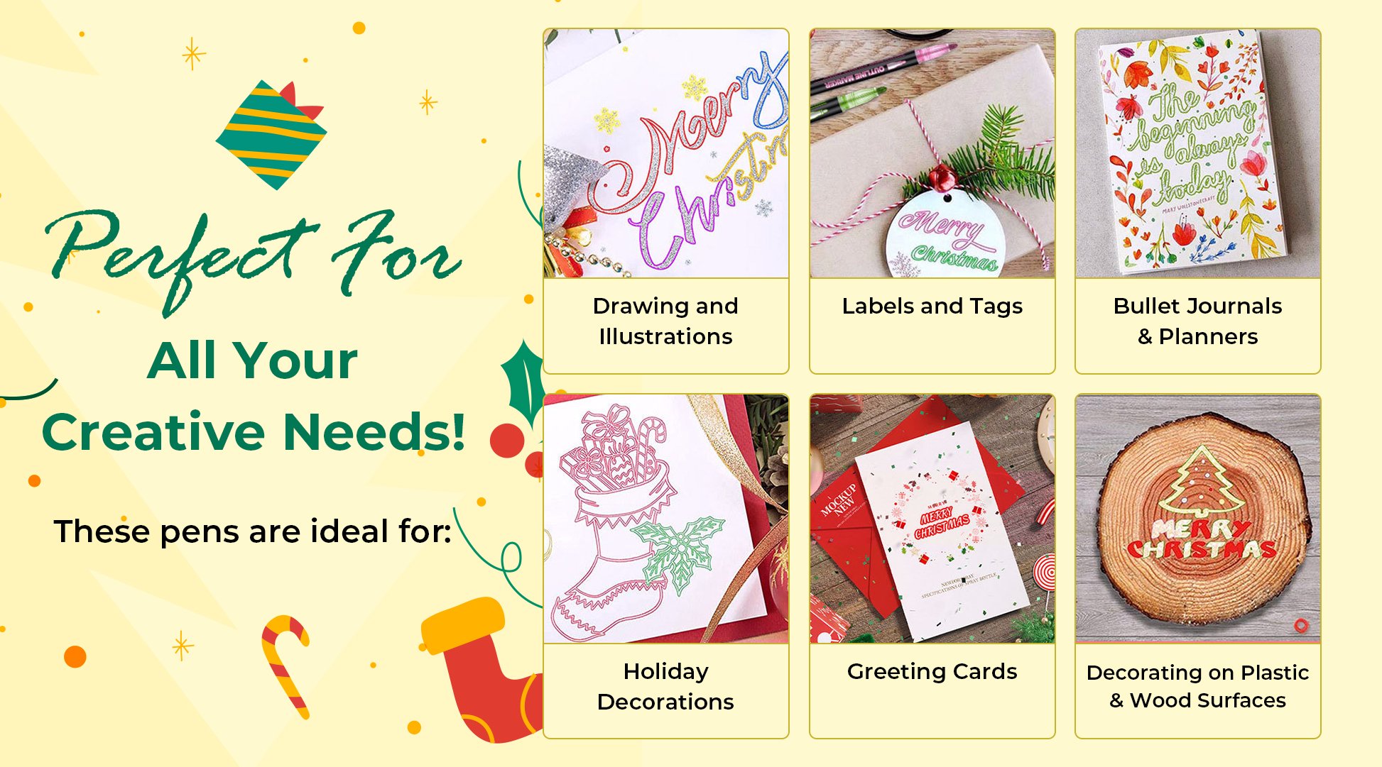 These dual-line outline pens are perfect for the holiday season. Create stunning cards, decorations, and gifts with a sparkling touch. Bright, bold, and full of festive fun!
